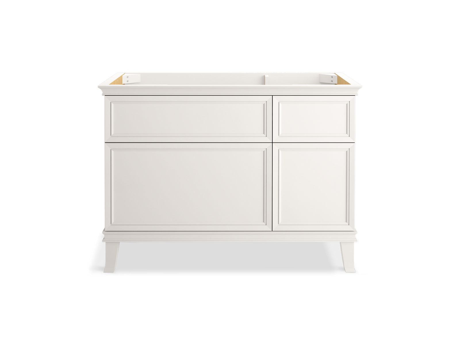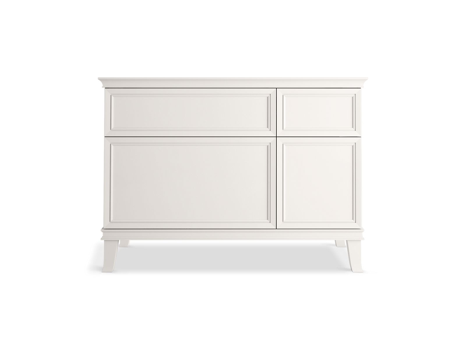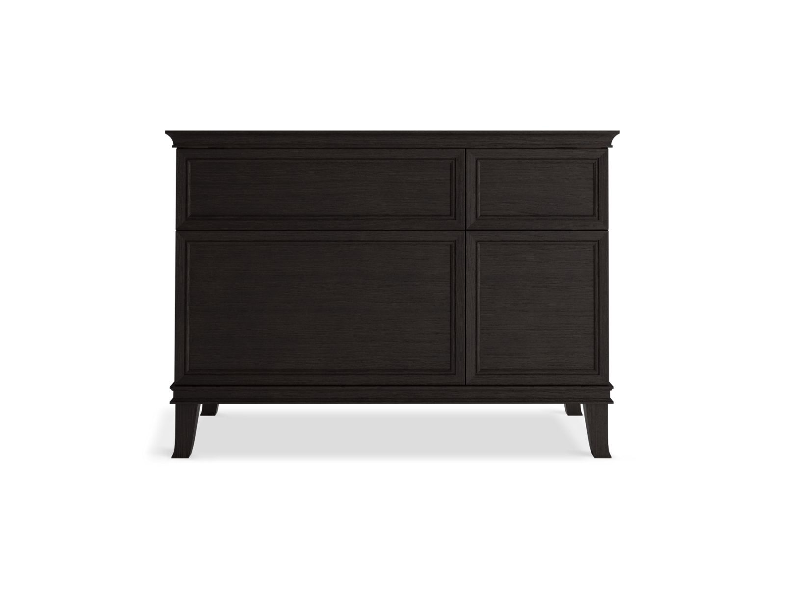 Elegant minimalist design meets midcentury traditional influence and Kohler craftsmanship in the Artifacts bathroom vanity. This simply ornamented, all-drawer cabinet features cornice molding reminiscent of an American Federal-style bookcase while flared solid-wood legs inspired by early nineteenth-century linen presses elevate the vanity’s style and off-floor functionality. Customize your bathroom centerpiece with a coordinating quartz top, contrasting industrial-style drawer pulls, and organizational in-drawer accessories (sold separately) for a look that fits your aesthetic and space.