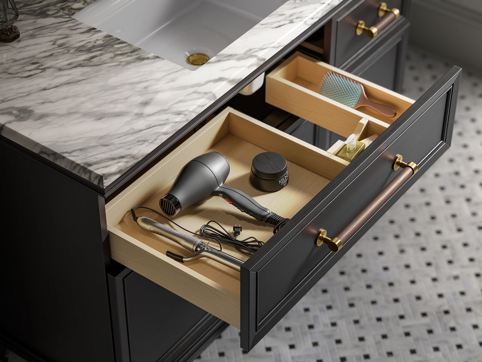 - Soft-close undermount drawer slides for smooth opening