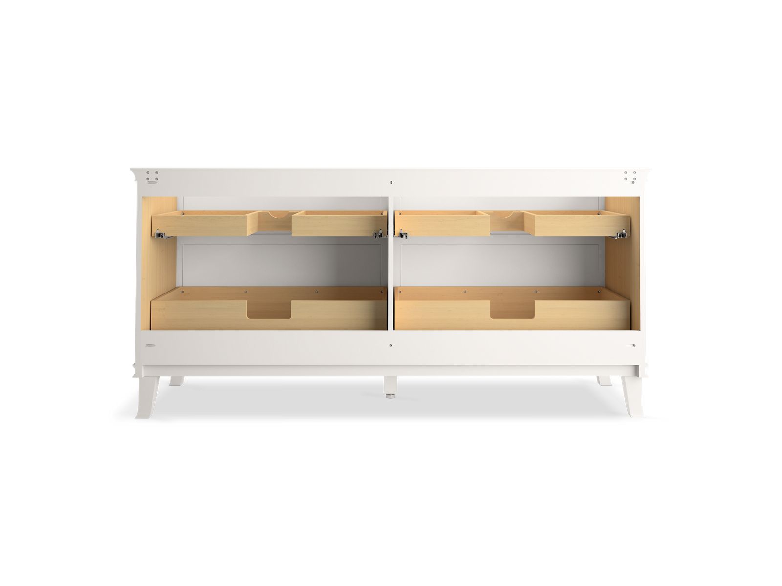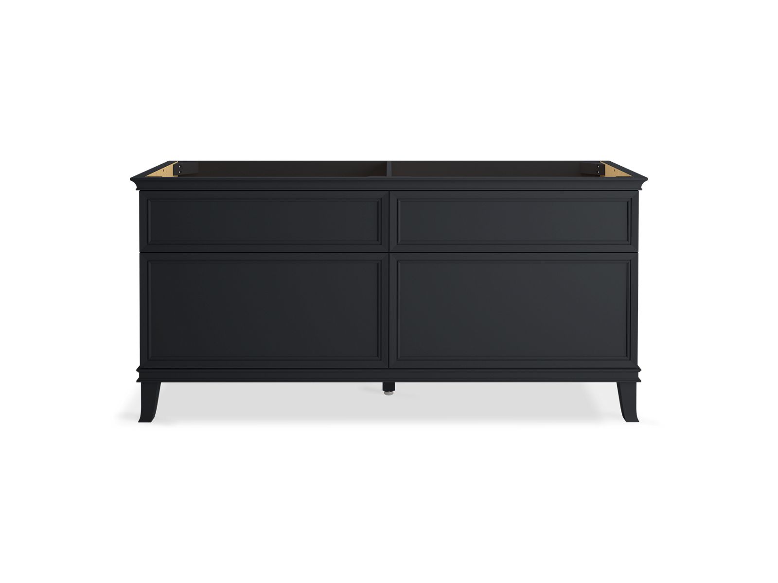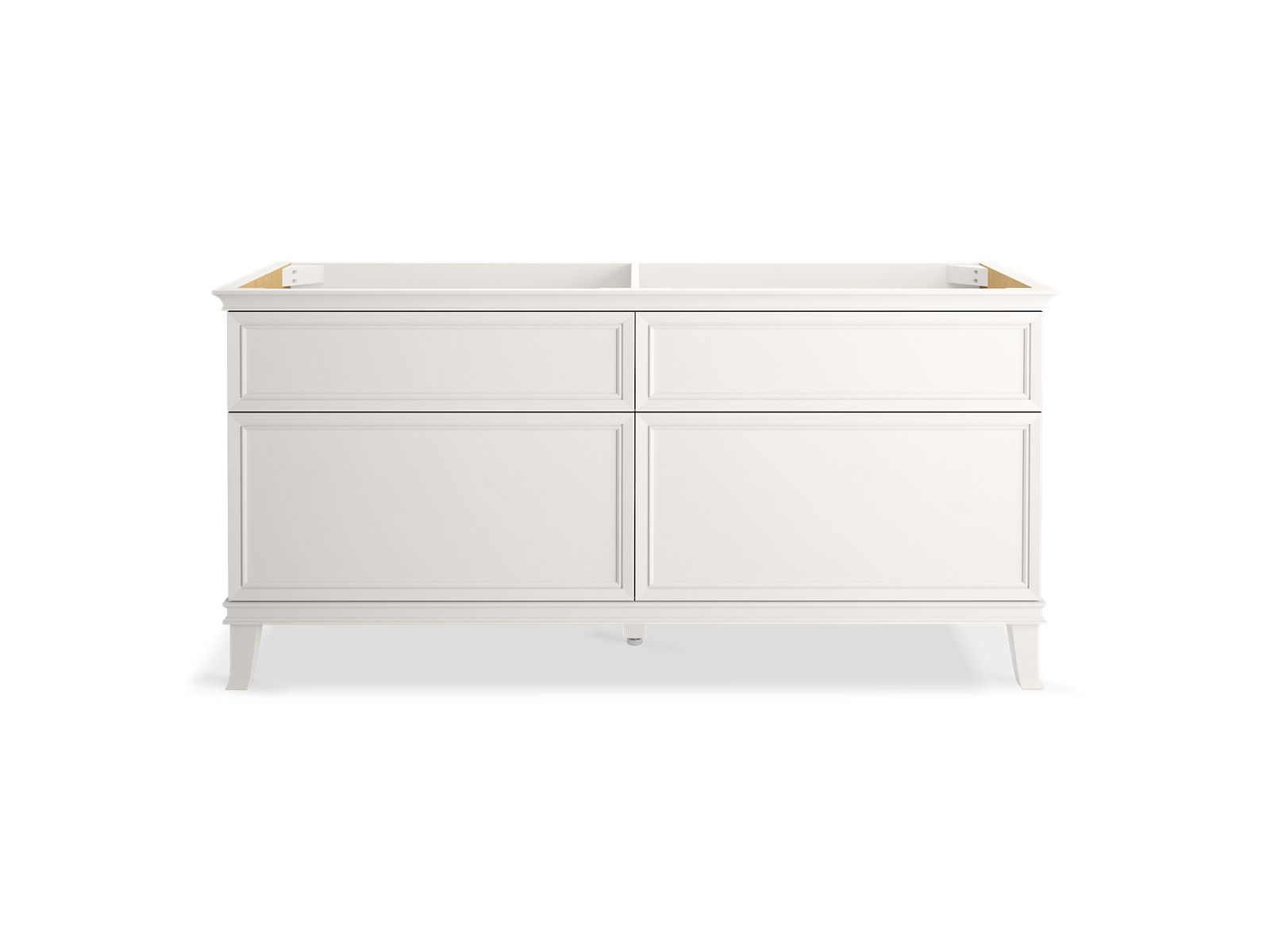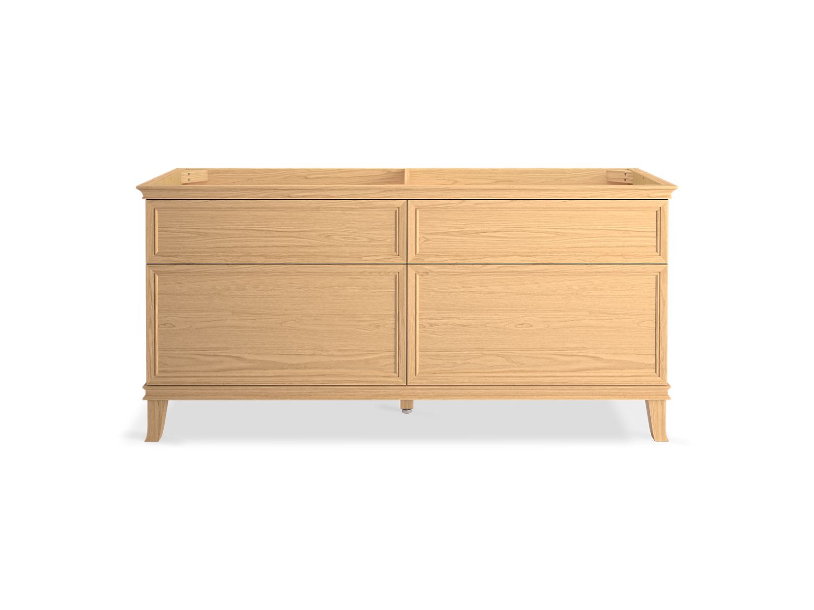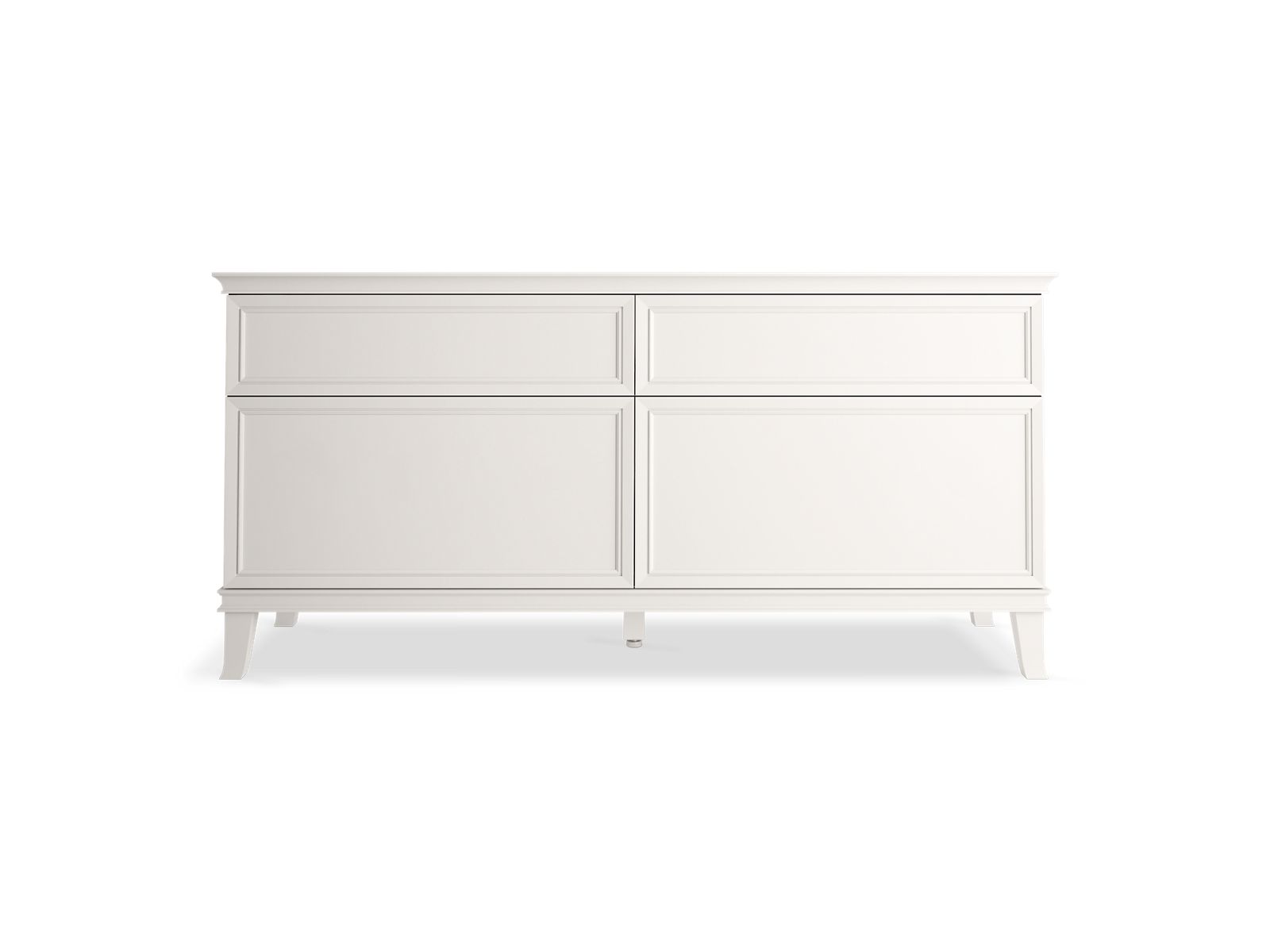 Elegant minimalist design meets midcentury traditional influence and Kohler craftsmanship in the Artifacts bathroom vanity. This simply ornamented, all-drawer cabinet features cornice molding reminiscent of an American Federal-style bookcase while flared solid-wood legs inspired by early nineteenth-century linen presses elevate the vanity’s style and off-floor functionality. Customize your bathroom centerpiece with a coordinating quartz top, contrasting industrial-style drawer pulls, and organizational in-drawer accessories (sold separately) for a look that fits your aesthetic and space.