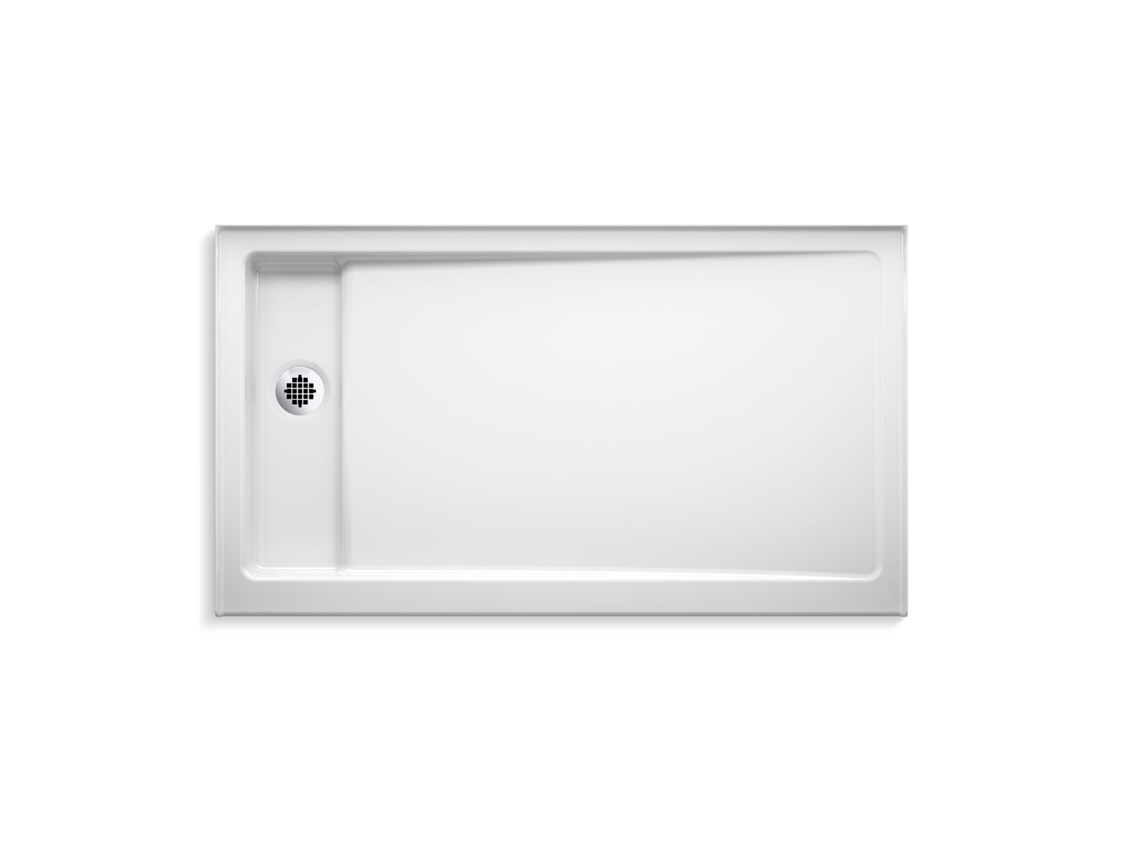 The Bellwether 60" x 34" shower base features KOHLER enameled cast iron construction for unmatched durability and ease of maintenance. The left offset drain is designed for easy 60" x 30" bath replacement. Add a removable cover over the recessed drain for a finished look. Safeguard® slip-resistant surface enhances safety.