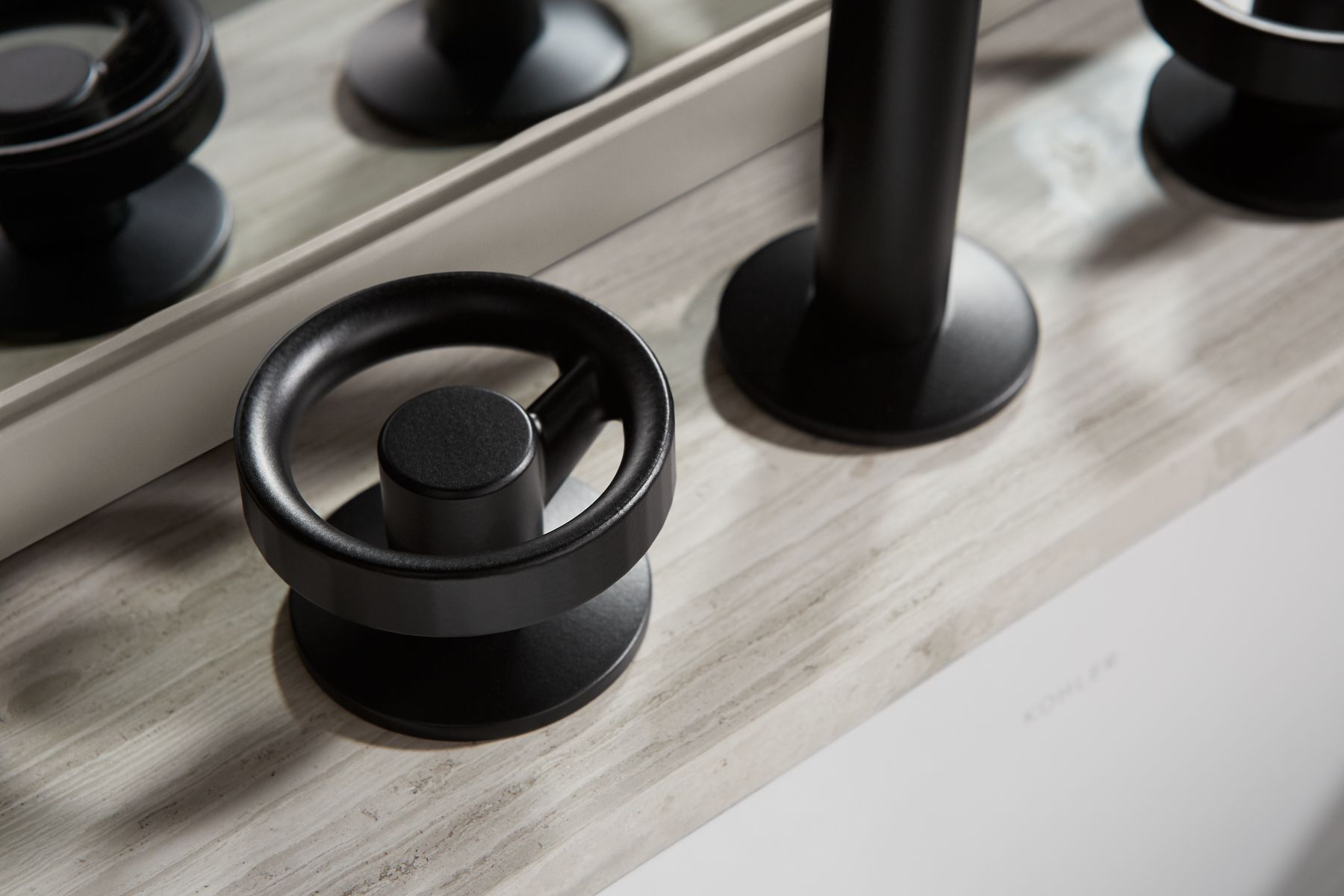 Modern form meets modern function: the KOHLER Components collection is defined by controlled forms and stark precision in every line and angle. With Components, you design your custom bath. Choose a spout, handles, and finish to build your own signature modern look. Modeled after machine valves and factory pipes, these Industrial handles pair with your choice of Components sink spout for a personalized design.