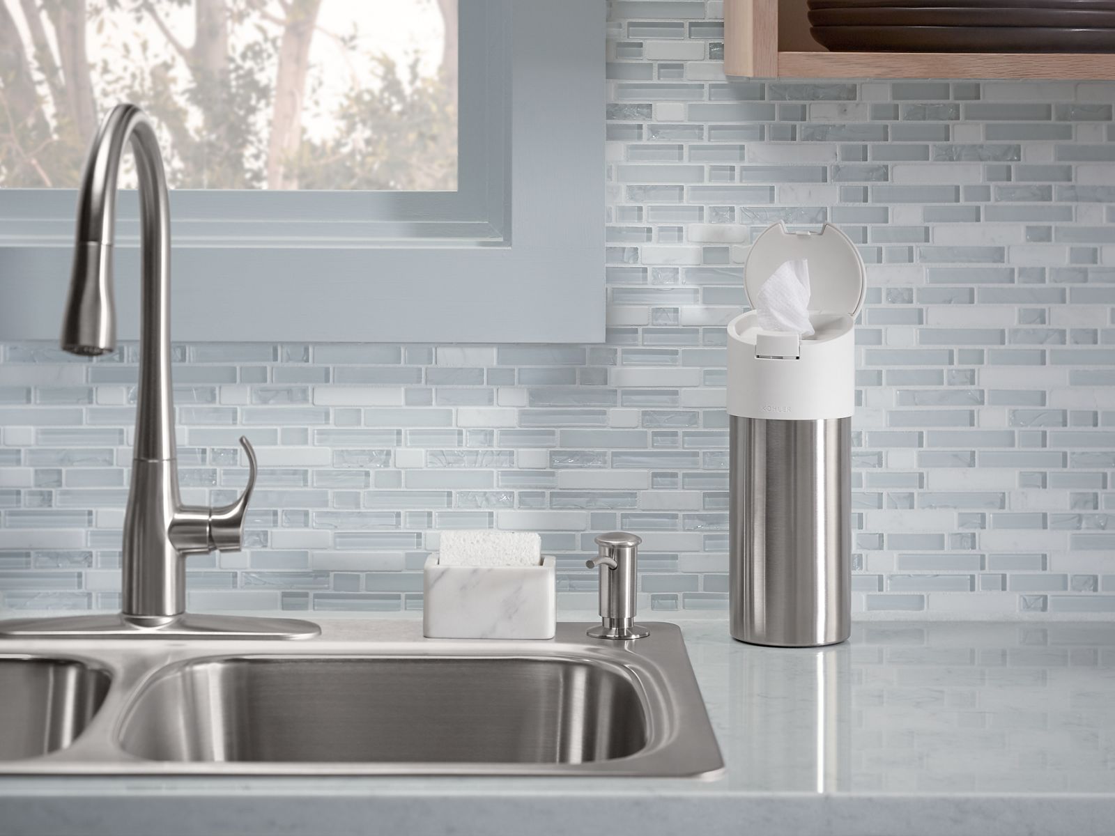 Keep your favorite liquid soap, dishwashing liquid, or hand lotion nearby in a convenient dispenser with a contemporary design. This sturdy dispenser offers a way to customize your sink to meet your design vision while helping to keep your countertop tidy. Available in a range of finishes to complement your kitchen decor.