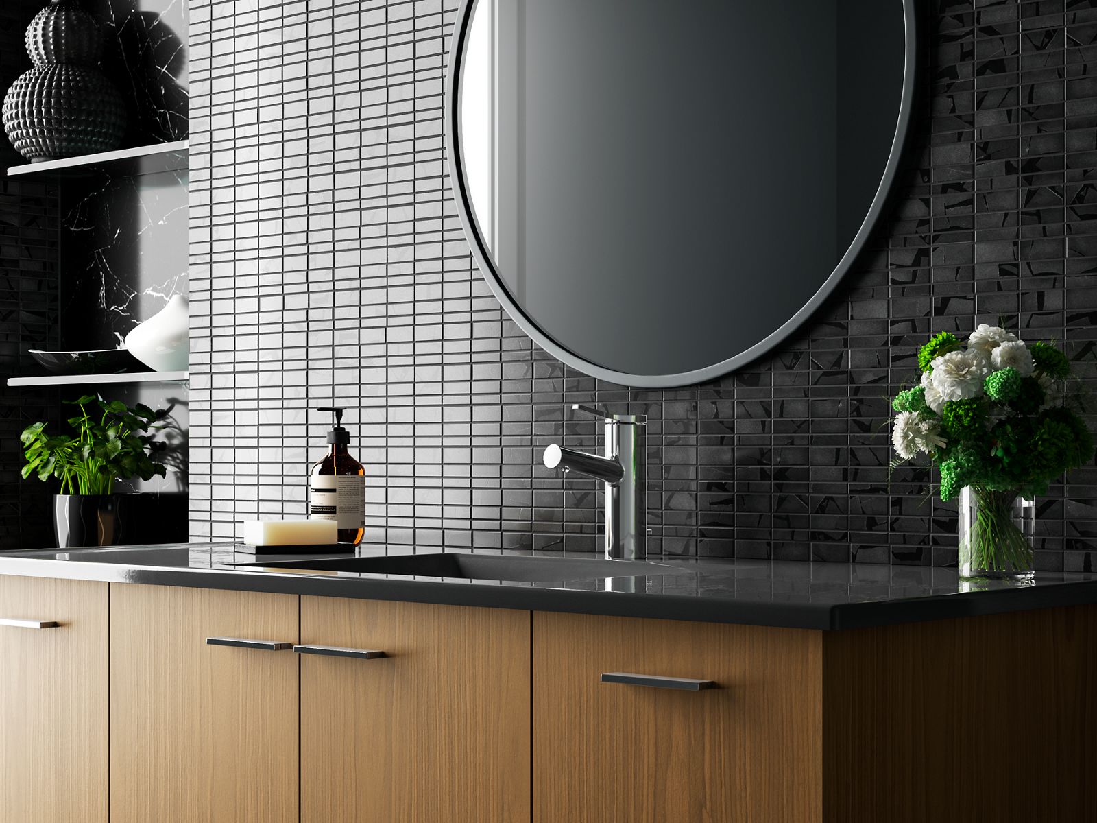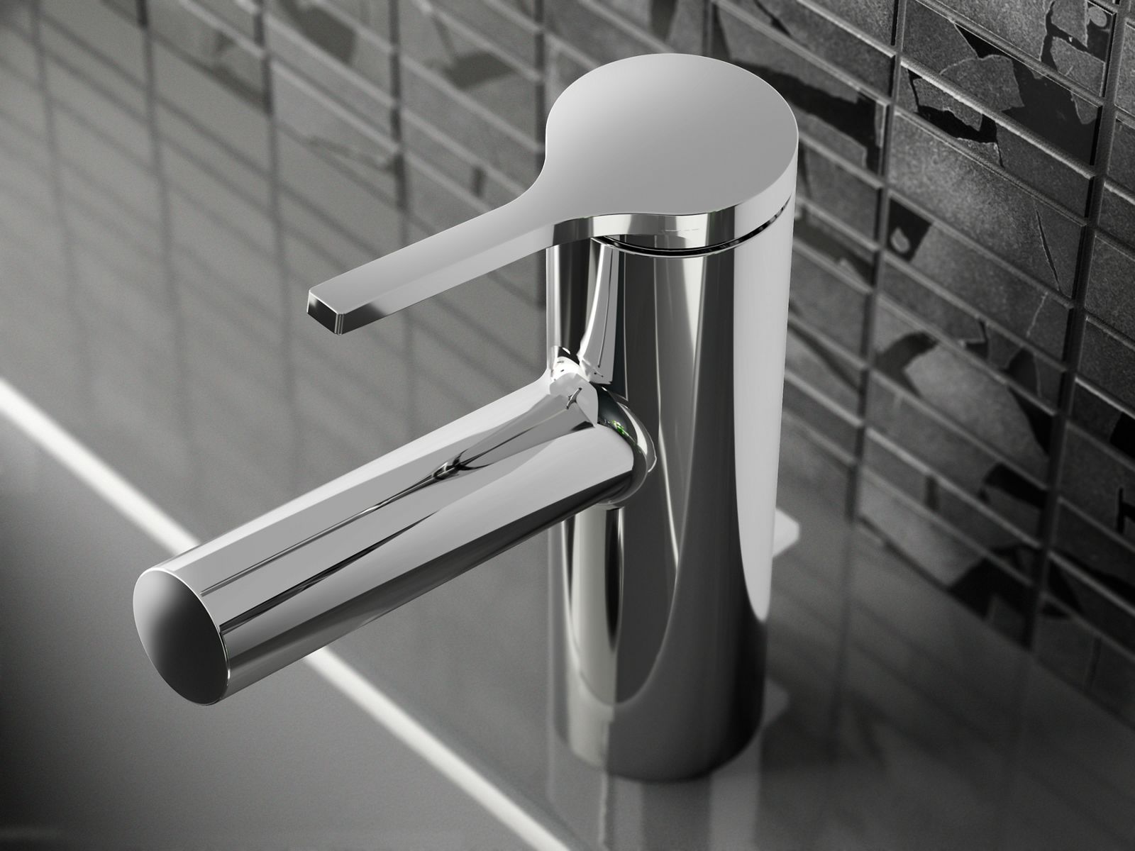 Inspired by pure geometric style, the form of the Elate bathroom sink faucet has a sophisticated fluidity that brings a visually stunning yet simple look to the bathroom. The sleek vertical tower design offers a top-mount lever control that is easy to reach.