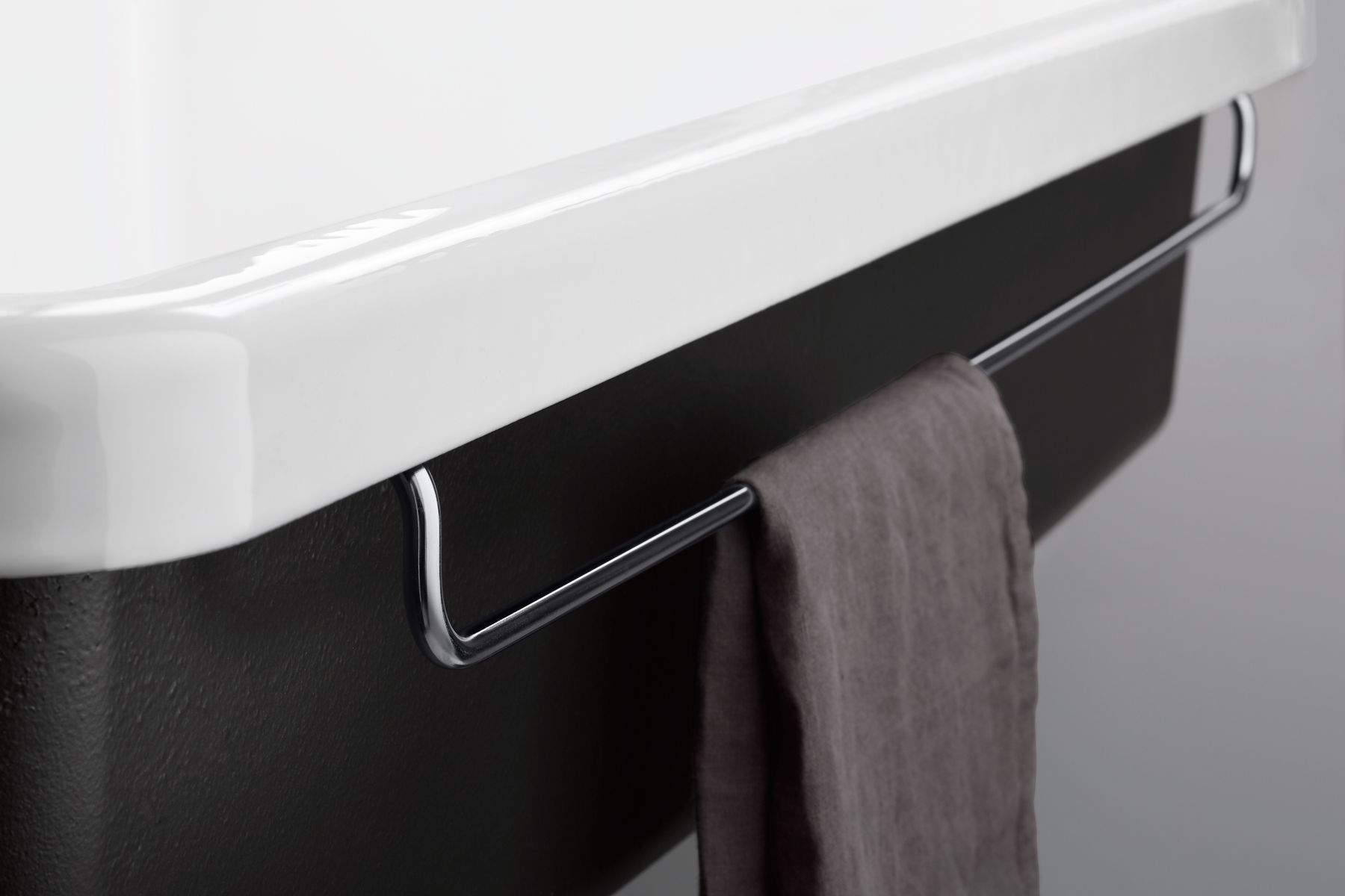 Custom-designed for the Farmstead kitchen sink, this towel bar mounts directly to the front of the sink to provide convenient storage for dish towels.