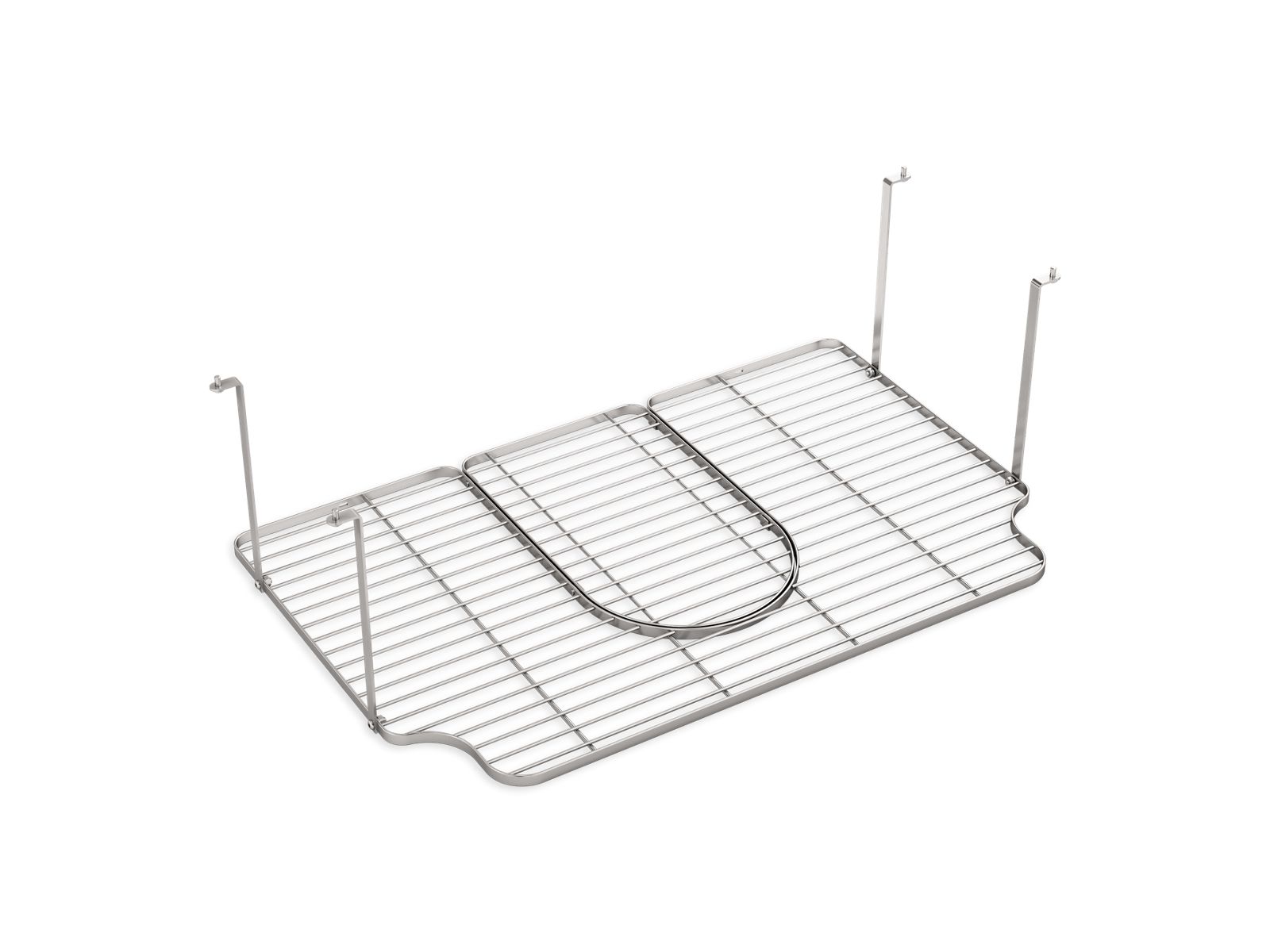 Create a large storage area under your wall-mount Farmstead kitchen sink with this easy-to-install shelf. The robust stainless steel shelf hangs securely from the sink basin to hold cleaning supplies and sink accessories in quick reach. The custom design accommodates both Farmstead leg styles - contemporary or transitional - for a perfect fit.