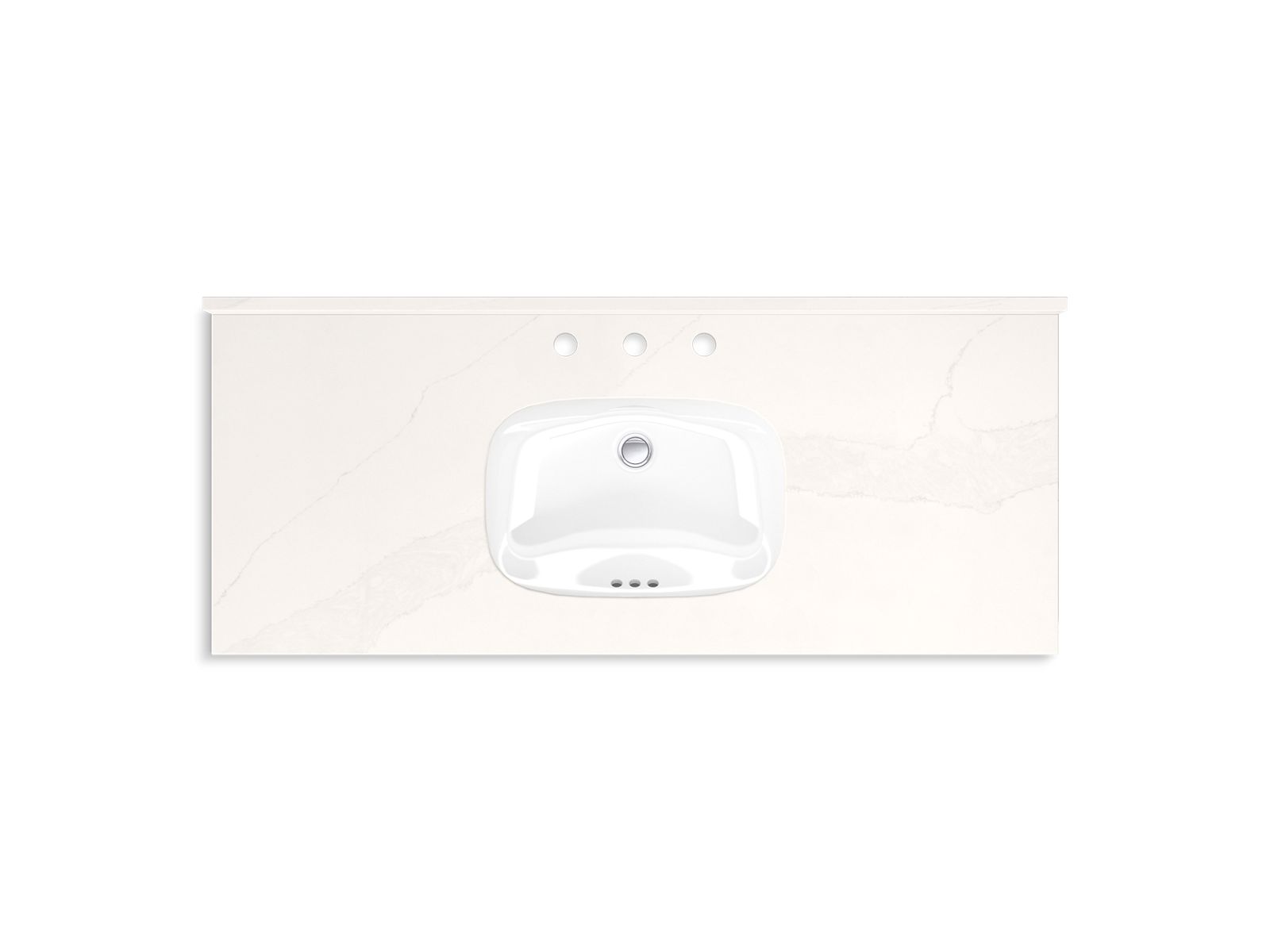 In typical Shaker style, the Hadron bathroom vanity set is a classic. Its modest, clean design doesn’t overpower your bathroom — it blends into it — lending itself to many decorating styles. The Hadron vanity set includes cabinet, quartz countertop, sink, and Vibrant® Brushed Nickel hardware. Pair with any KOHLER® widespread bathroom sink faucet for your own unique touch.