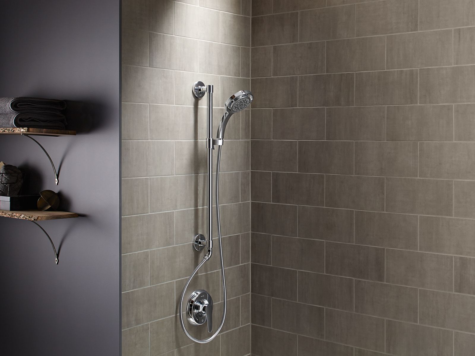 - Slidebar bracket allows you to adjust height and angle of handshower