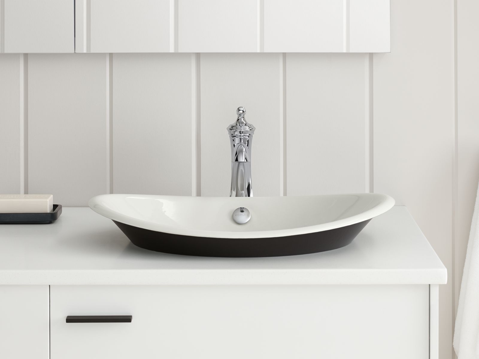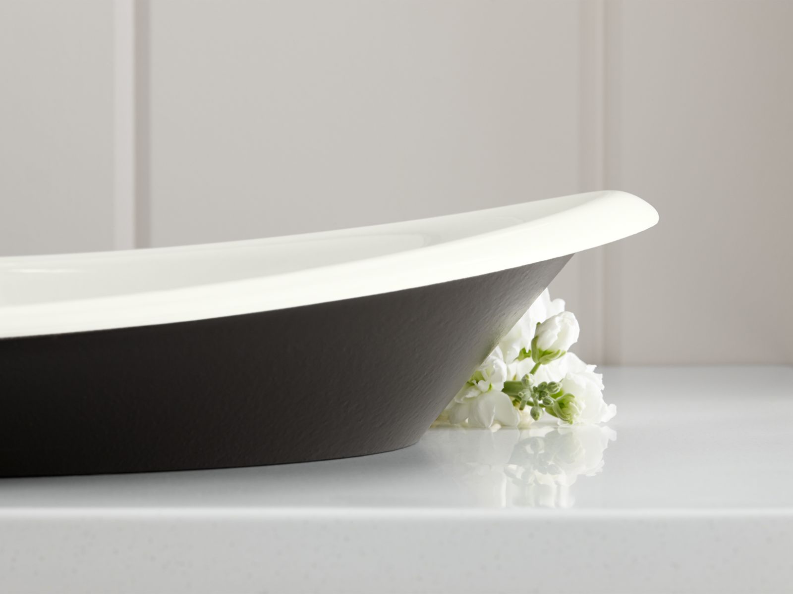 With its gently curved, organic shape, the Iron Plains sink combines distinctive style with the extreme durability, strength, and vintage soul of KOHLER enameled cast iron. This vessel sink features an Iron Black painted underside paired with a smooth enamel basin color for the perfect look.