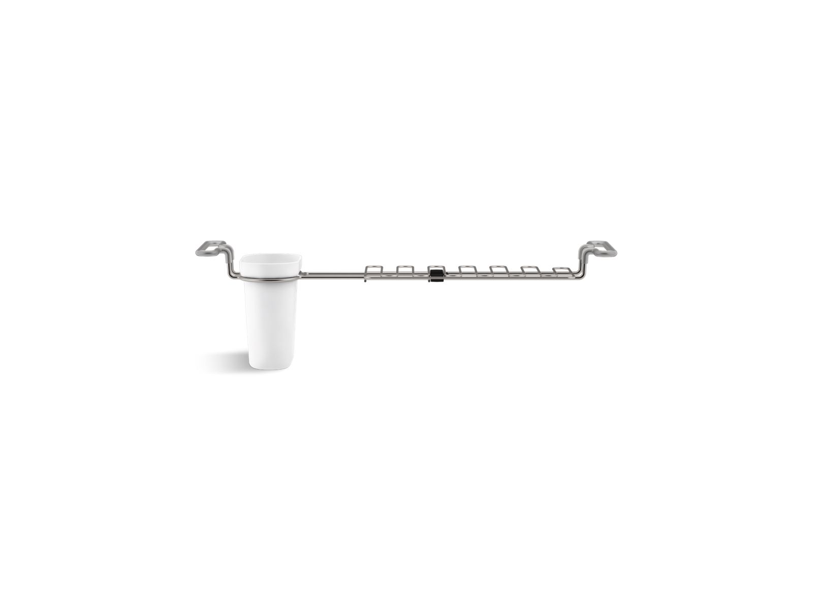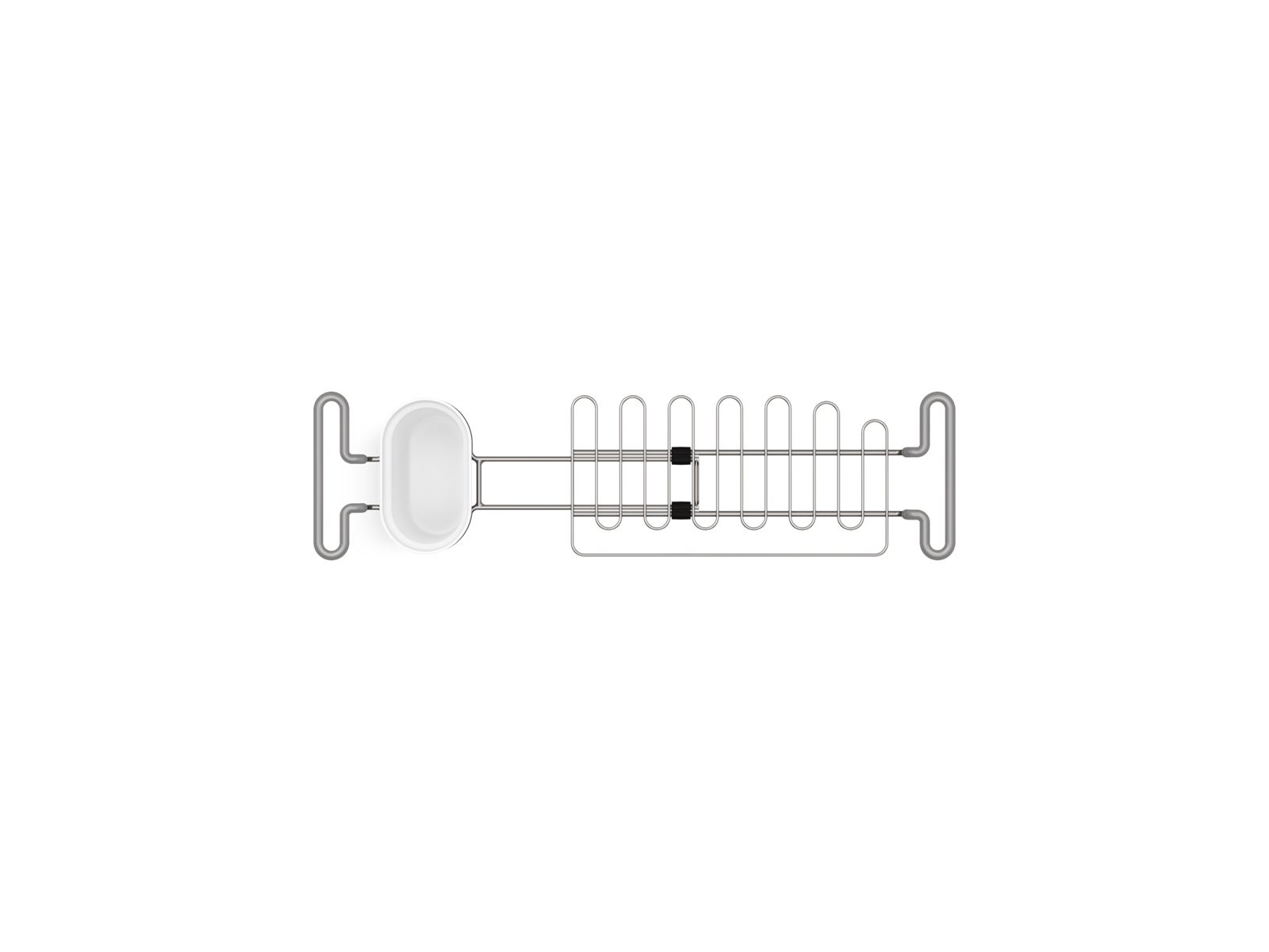 Improve workflow in the kitchen and organize your cleaning tools with this expandable utility rack. Soak utensils in the cup before they go in the dishwasher. Let your dishcloth dry over the dishcloth rail. Nonslip coating keeps the rack securely in place for tasks in and around the kitchen sink.