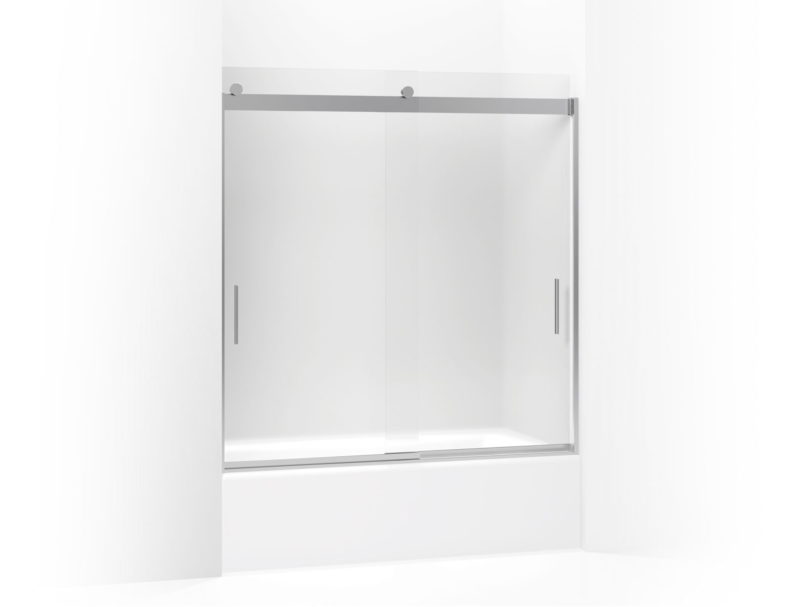 Levity® Sliding Bath Door, 62" H X 56-5/8 - 59-5/8" W, With 1/4" Thick Frosted Glass Anodized Brushed Bronze