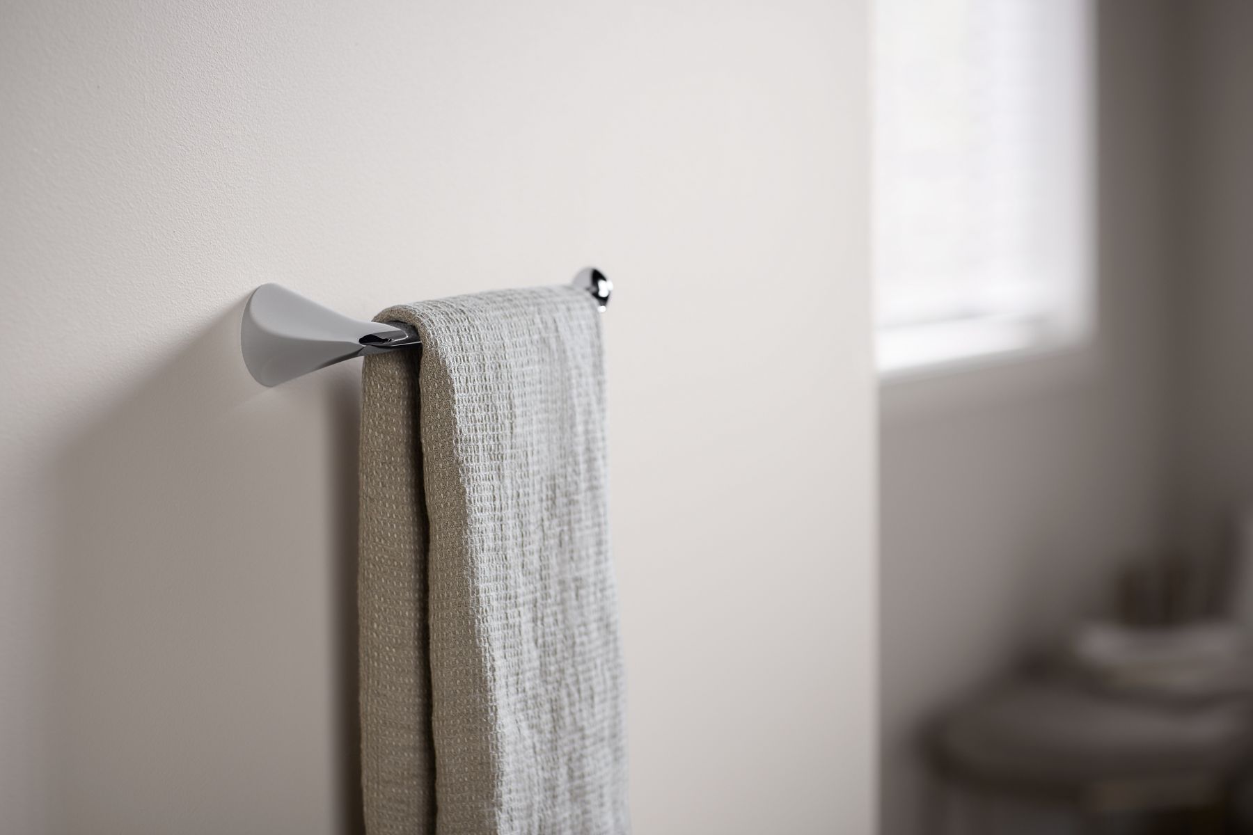 Inspired by minimalist design, the Modern collection pairs slim, restrained lines with elegantly flared shapes. This Modern towel arm complements a wide range of bathroom faucets from transitional to contemporary.