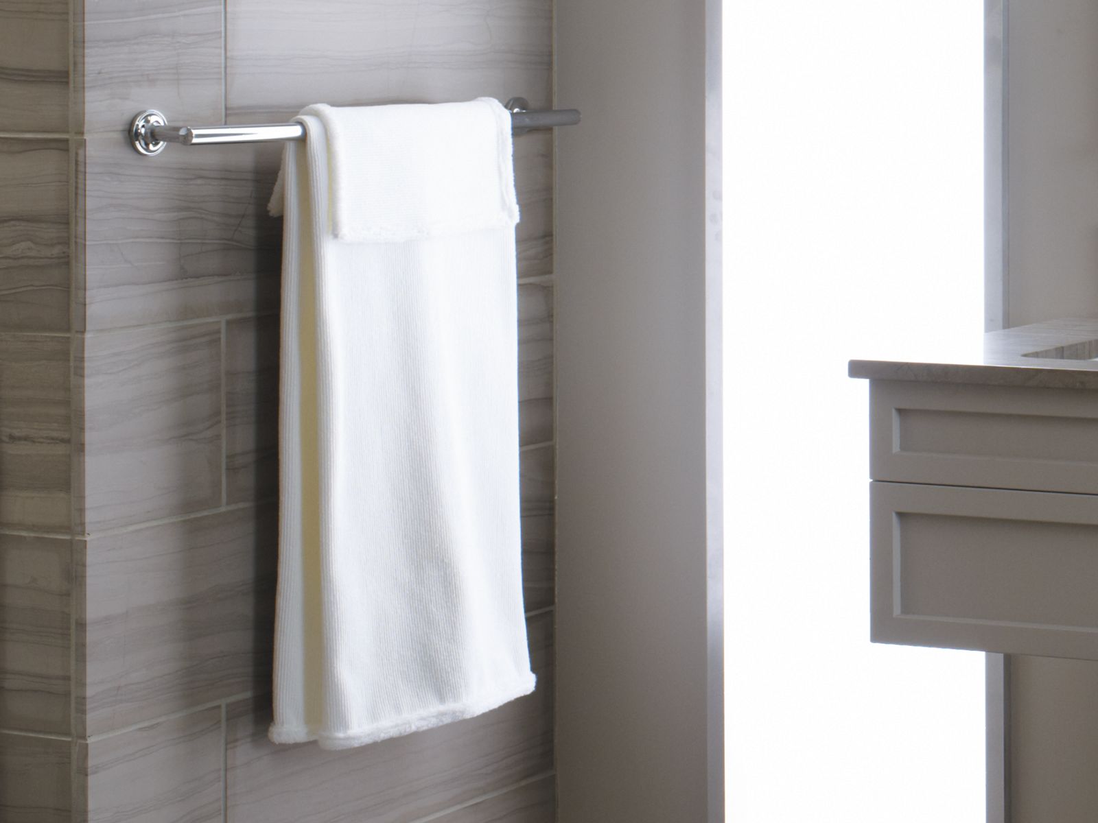 Purist accessories combine architectural forms with sensual design lines for a modern, minimalist look. Featuring a sturdy round bar mount to the wall by circular plates, this towel bar brings the art of simplicity to your bath or powder room, blending in beautifully with the Purist Collection.