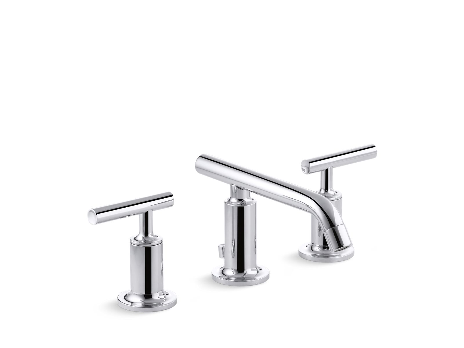 Combining architectural forms with sensual lines, Purist faucets and accessories bring a touch of modern elegance to your bathroom. This sink faucet exemplifies the Purist collection's understated style, with its low spout and lever handles. Easy-to-install and leak-free UltraGlide(TM) valves provide reliable performance and durability. And the spout features laminar flow, which helps conserve water while preventing splashing.