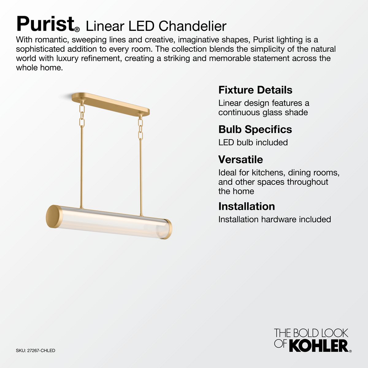 Purist® 34" Led Linear Chandelier Brushed Moderne Brass