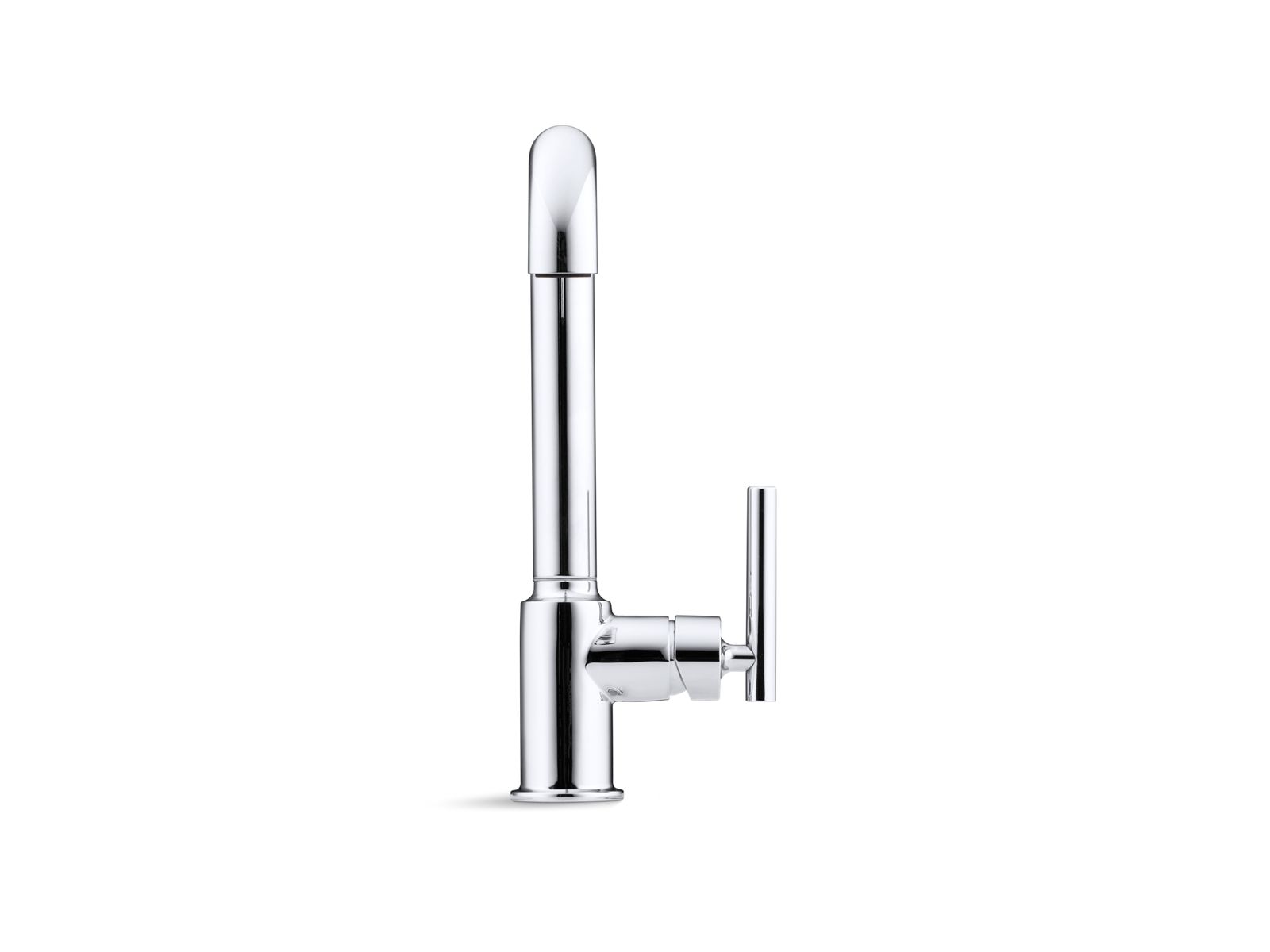 Designed to accommodate extra-thick counters, this Purist kitchen faucet combines minimalist style and simple-to-use features. Featuring a single lever handle, the high-arch swing spout includes a pull-out sprayhead with two flow options and pause function to make kitchen tasks easier.