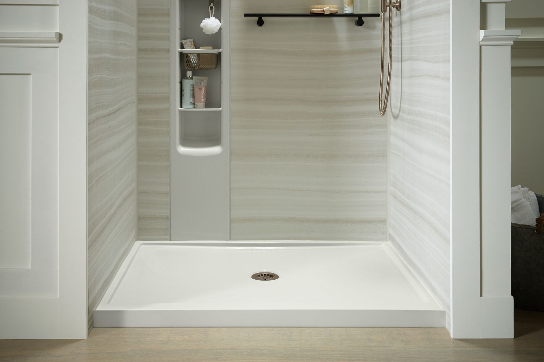This Rely shower base provides the reassurance of a low step-over threshold for easy access to your shower. A water containment bead along the threshold serves to prevent water escaping onto the bathroom floor. Durable acrylic construction eliminates any flex when stepping into the shower and allows for quick, easy installations. The Rely shower base is designed to work with any shower wall application and pairs perfectly with the KOHLER Choreograph® shower wall collection. Coordinate it with Choreograph walls and accessories to complete your personalized shower installation.