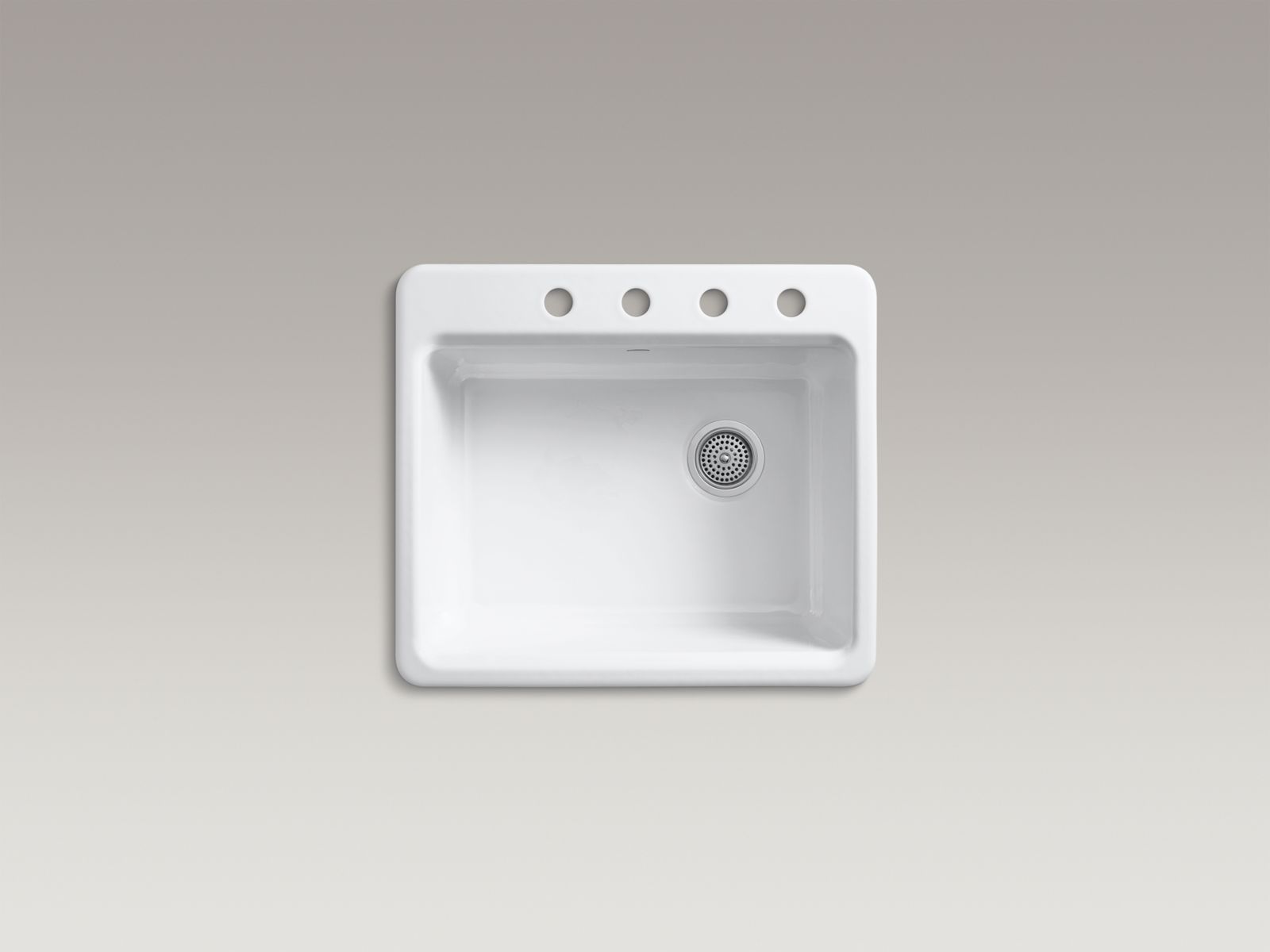 Sized to fit small spaces, the Riverby sink is an elegant and versatile addition to the kitchen as a primary, secondary, bar, or utility sink. A single bowl provides ample space to soak and wash large items, while front and back beveled edges help keep water in the sink. A sloped base to a single offset drain minimizes water pooling. Crafted from enameled cast iron, this sink resists chipping, cracking, or burning for years of beauty and reliable performance. An included custom-fit bottom sink rack also helps protect the sink surface from daily wear.