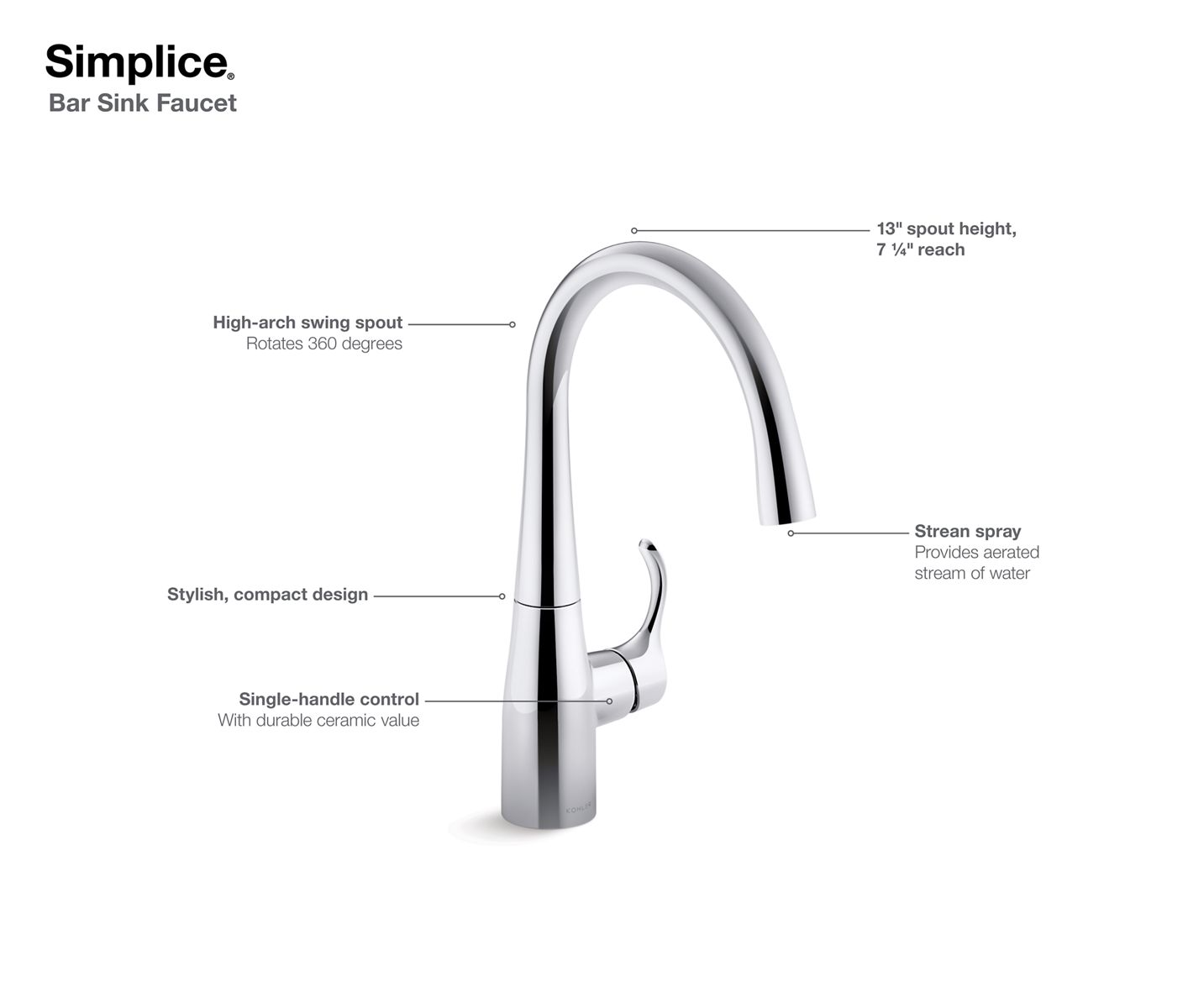 Ideal as a secondary sink for entertaining, food prep, and cleanup, this Simplice bar sink faucet combines an elegant, universal design with exceptional ergonomics and functionality. Coordinate this faucet with a Simplice primary kitchen sink faucet.