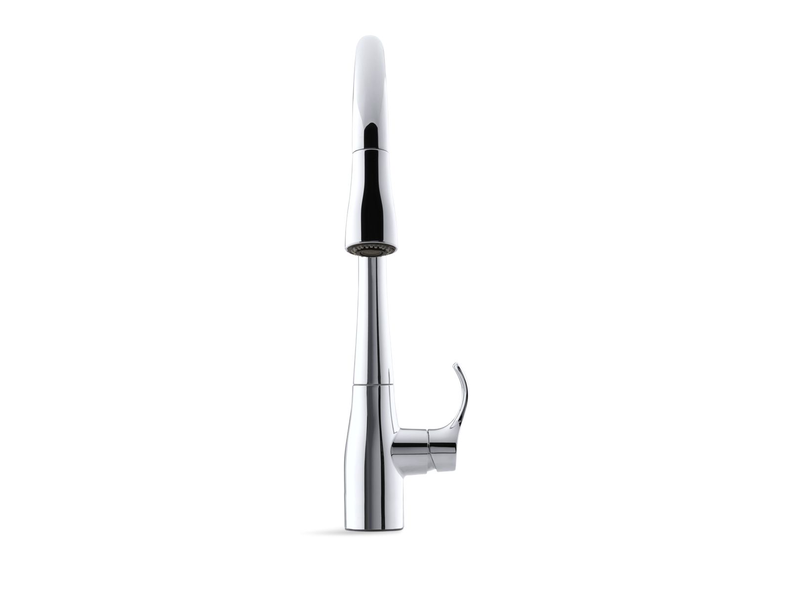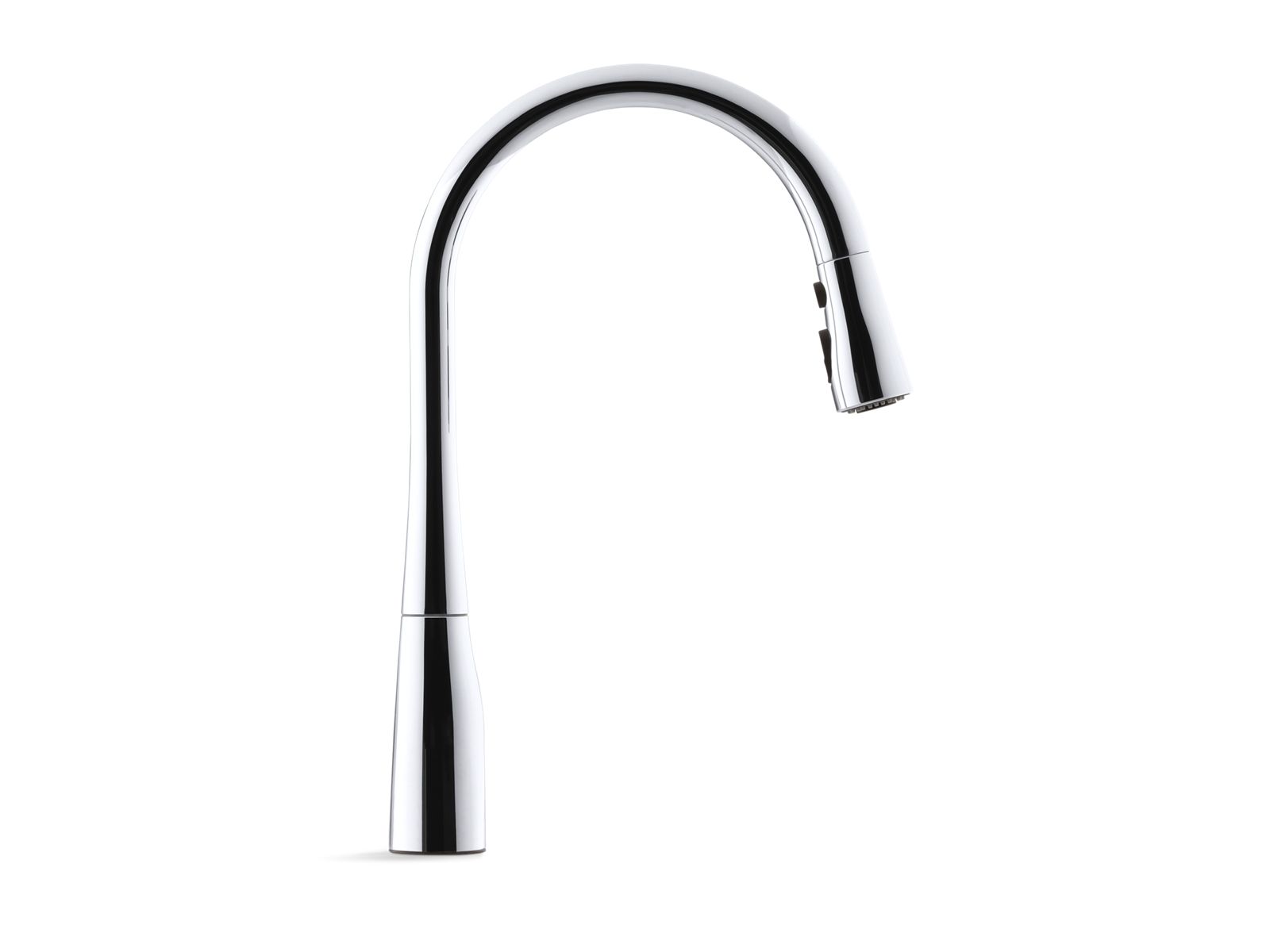 An innovative fit for a variety of kitchens and tasks, this Simplice kitchen faucet combines an elegant, universal design with exceptional ergonomics and functionality. The high-arch swing spout rotates 360 degrees, while the smoothly maneuvering sprayhead pulls down into the sink for up-close tasks, or out of the sink to fill pots. Sculpted buttons on the sprayhead ensure simple operation even with wet, soapy hands. Sweep spray creates a wide, forceful blade of water for superior cleaning. Kohler's docking system, DockNetik, secures the pull-down sprayhead to the spout.