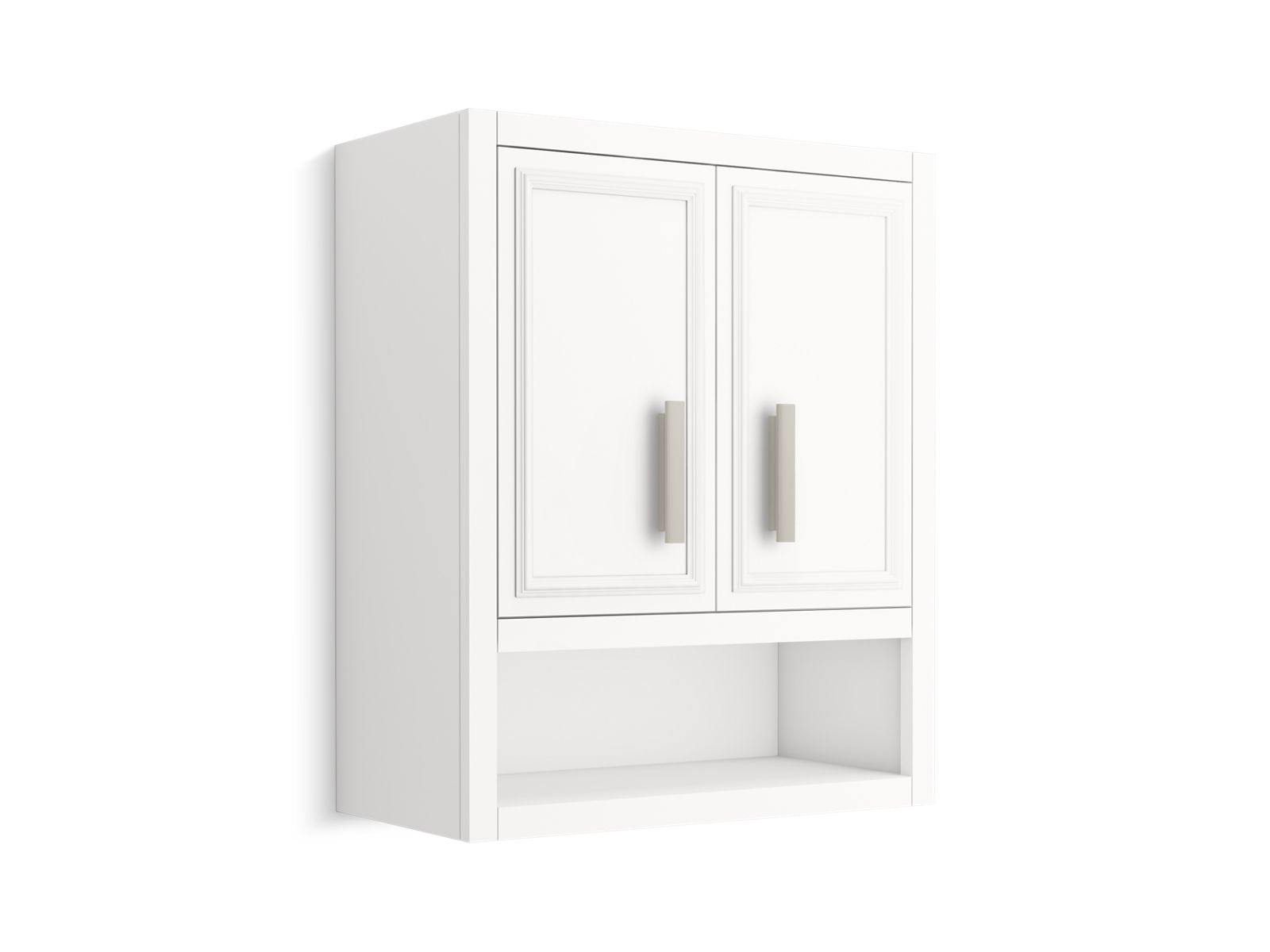 Elegant and mysterious, Southerk bathroom cabinetry evokes contemporary class with a nod to the traditional for an aesthetic that suits any style. Frame-like molding on door-front panels are further adorned with elongated decorative handles. Make your everyday storage uniquely yours with choice of color. Wall cabinet and Vibrant® Brushed Nickel hardware are included. Additional hardware finishes are also available.