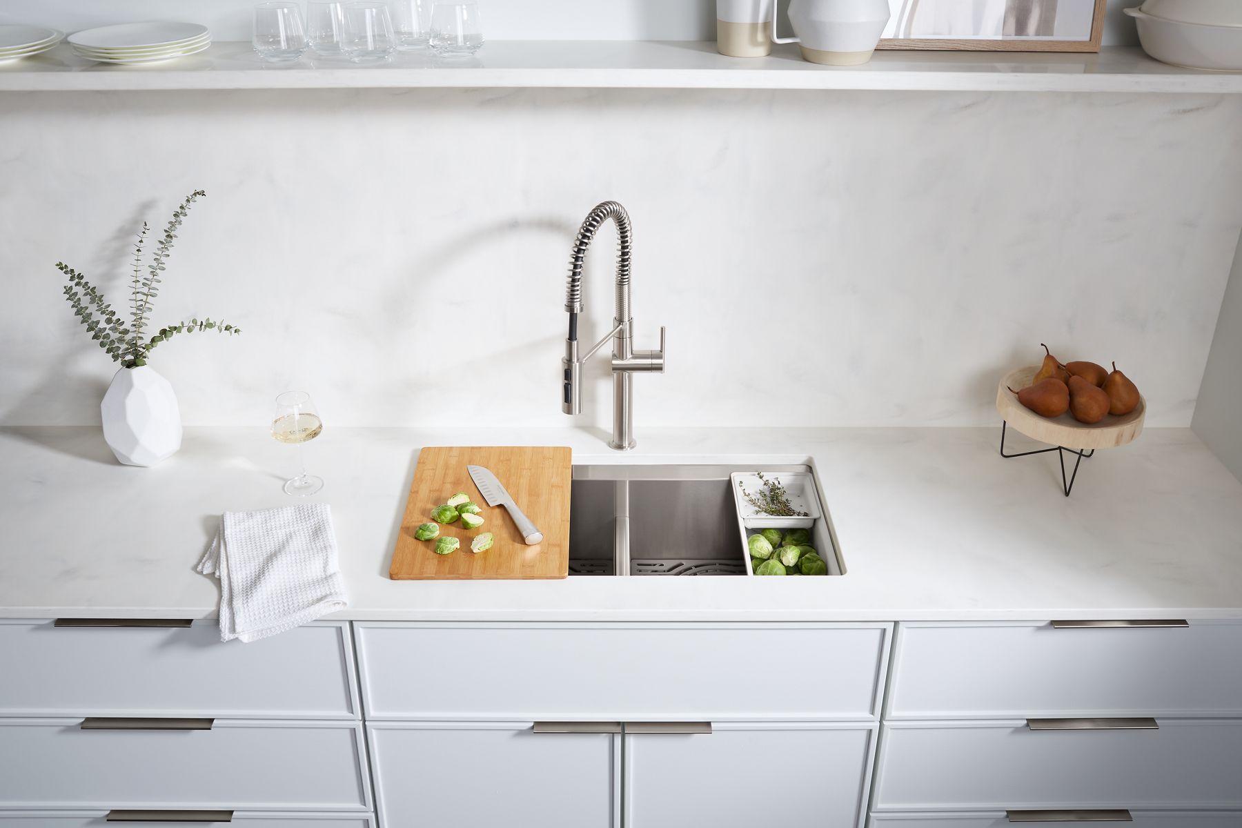 - Smart Divide® feature offers a lower bowl divider that increases workspace versatility