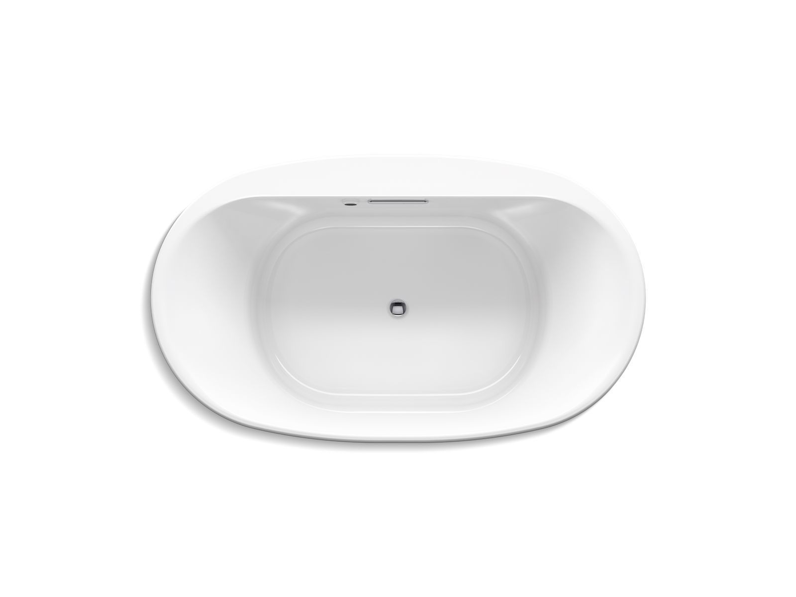 Streamlined for simplicity, the Underscore oval bath exudes refined style with contemporary flair. The Bask heated surface warms your back, shoulders, and neck with adjustable temperature settings to create a soothing, spa-like environment. A slotted overflow drain allows for a luxuriously deep bath as you relax against the comfortable sloped backrest.