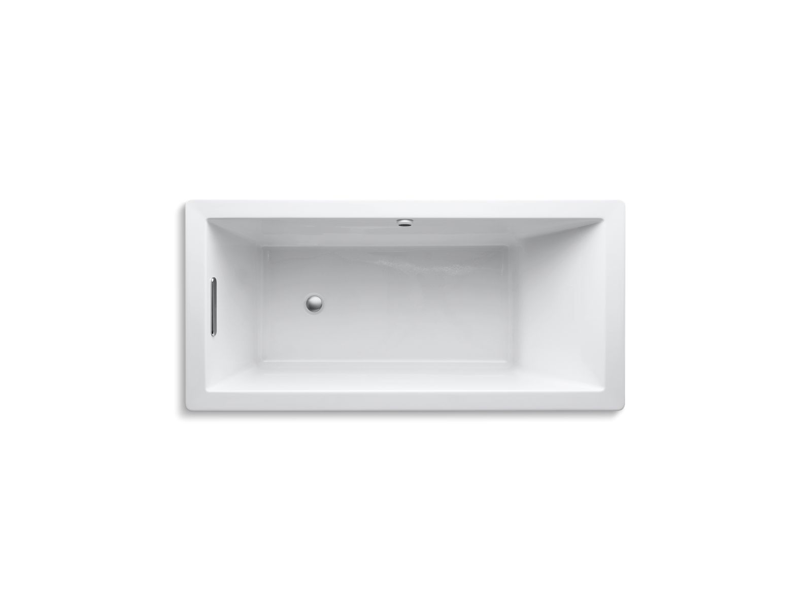 Streamlined for simplicity, this Underscore bath exudes refined style with contemporary flair. Its heated surface warms the back and neck with adjustable temperature settings to create a soothing, spa-like environment. A slotted overflow drain allows for a luxuriously deep bath as you relax against the comfortable sloped backrest.