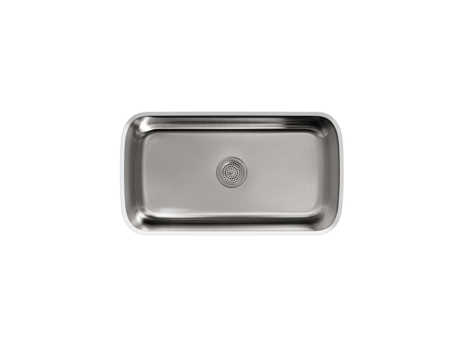 Constructed from premium stainless steel, Undertone brings home the durability, performance, and polished look of professional kitchens. This wide rectangular basin accommodates your largest pots and pans. A mirror-finish edge adds an elegant accent. An engineered sound-absorption system significantly reduces dishwashing and disposal noise.