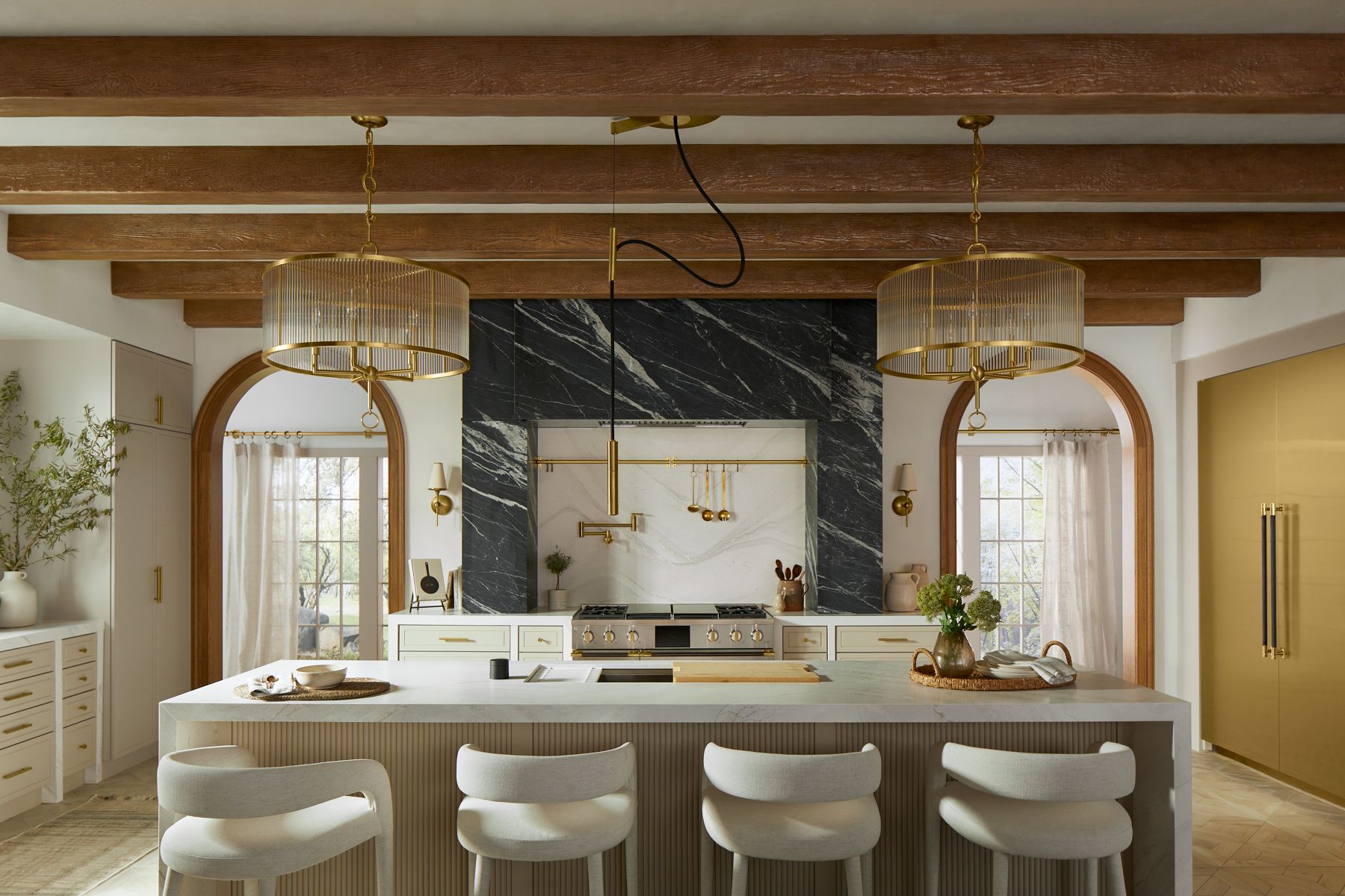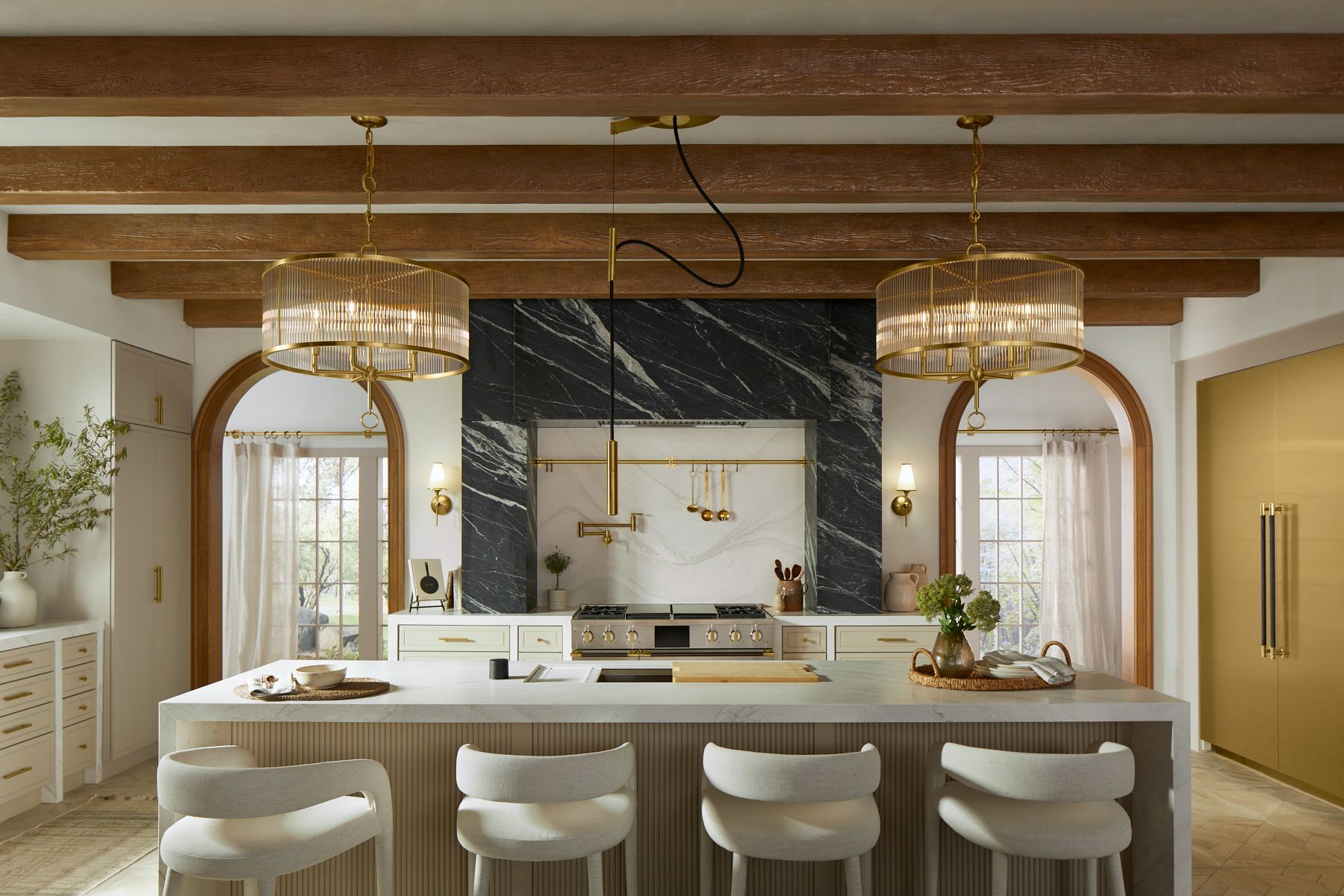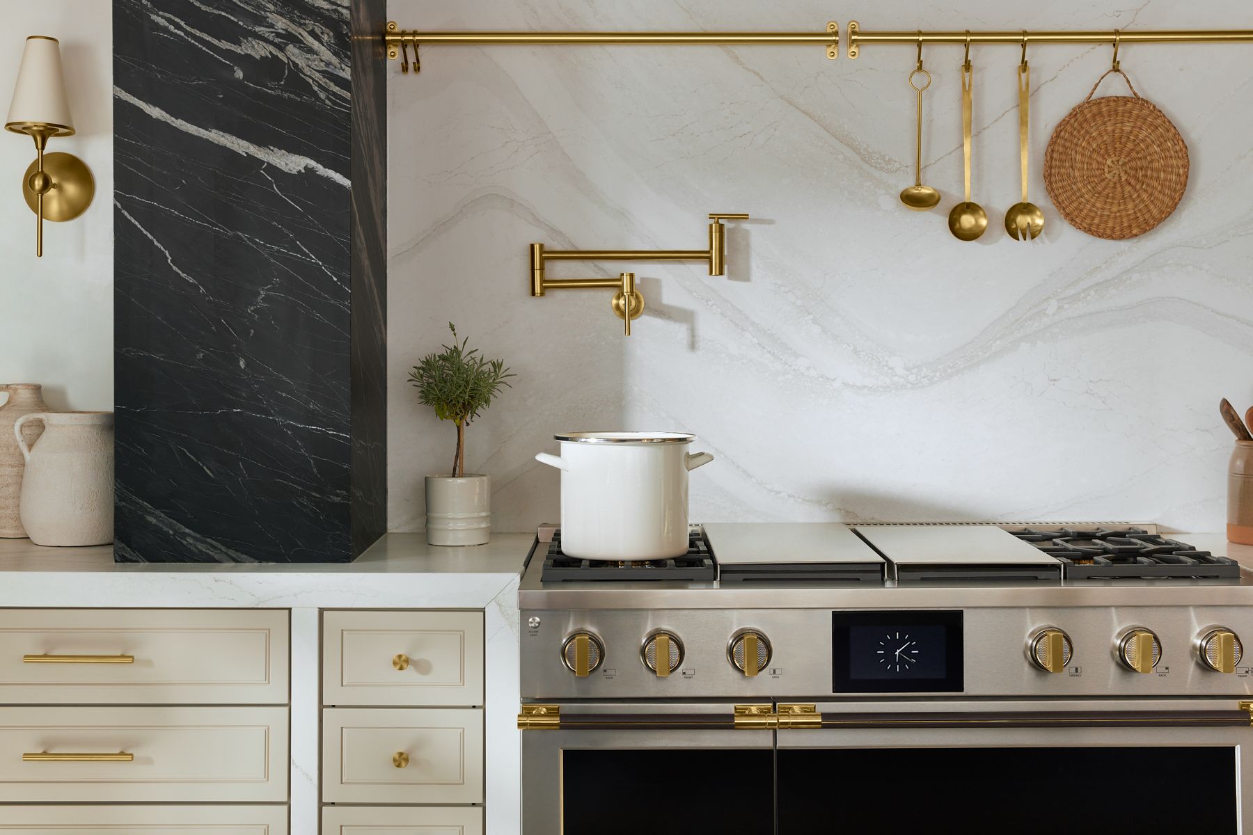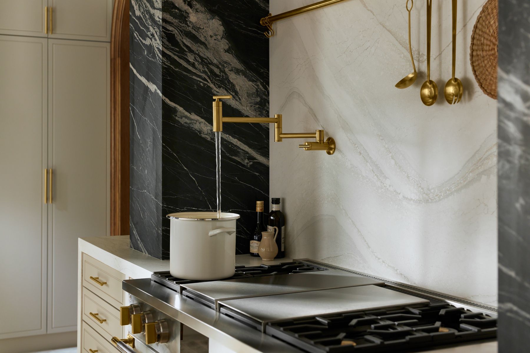 Imagine the practicality of a faucet that takes up no valuable counter space and can fold out of the way when not in use. Now imagine a faucet that can swing both to the left or right, extends to over 23” so that you can fill pots on or near your stove, and fills faster thanks to its robust 5.2 gpm flow rate. The wall-mount pot filler from KOHLER®, with its clean, contemporary design, doesn’t overpower or detract from your kitchen design, but it will still create a stir.