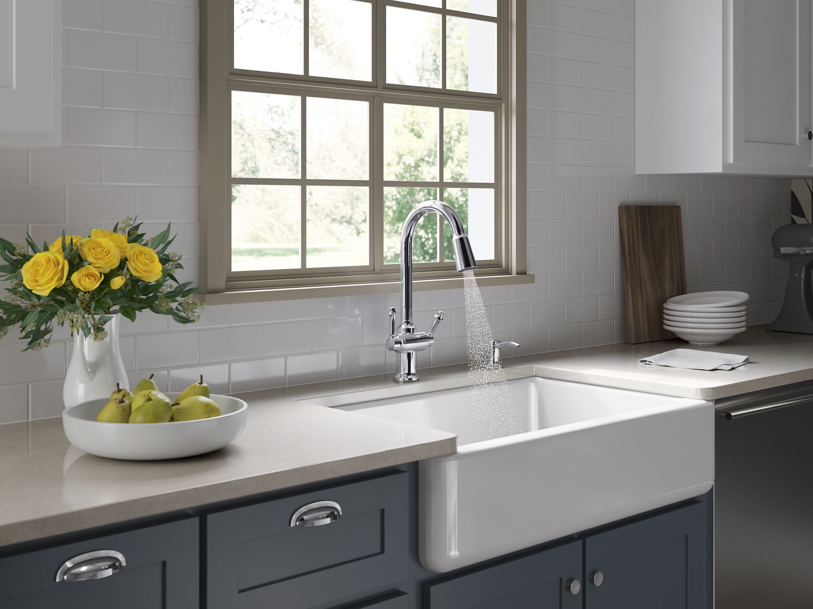 - Self-Trimming® apron overlaps cabinet face for easy installation and beautiful results